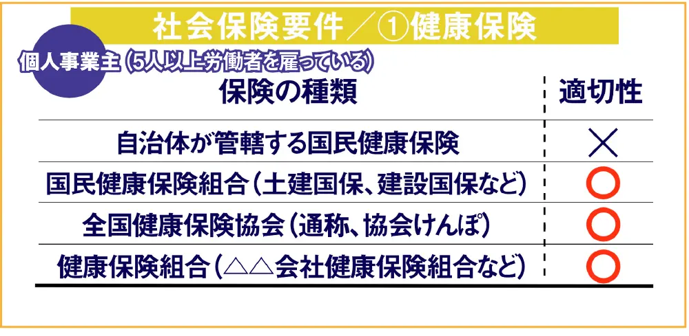 ただし建設業許可を受ける上では、いずれかに入っていればいいというわけではありません。適切な健康保険に加入する必要があります。