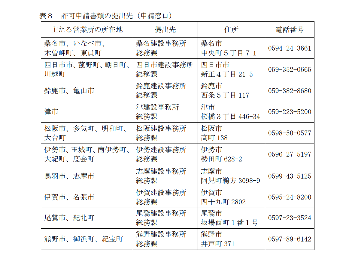 三重県の場合には、営業所の所在地を管轄する建設事務所に提出します。