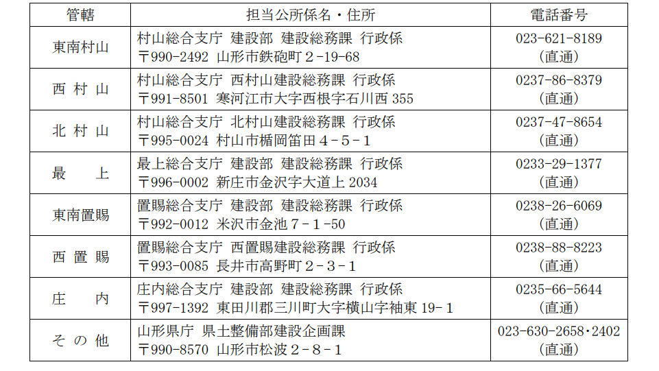 山形県の場合には、管内の各総合支庁に提出します。