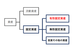 この図のように、資産は流動資産と固定資産に分類され、固定資産の中に有形固定資産が含まれます。